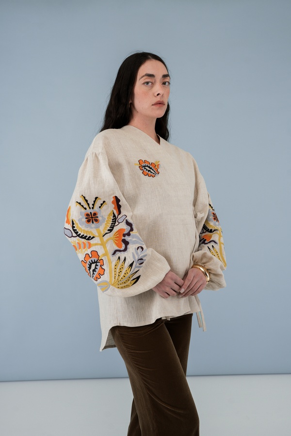 Ця вишиванка зроблена за 100% льону. З точки зору зменшення негативного впливу на природу льон має одні з найкращих показників.